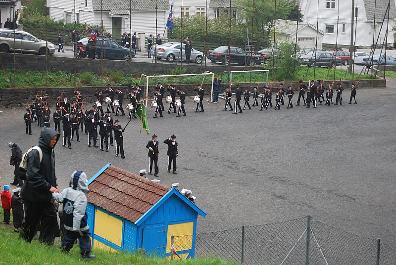 13:45 Korpsene marsjerer fra Torgallmenningen mot Skansen. Sydnæs først, Sandviken etter og Skansens sist.